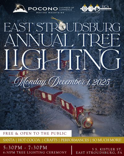 ALL ABOARD! Kick off the 25 Days of Christmas with the Eastburg Community Alliance and the Pocono Chamber of Commerce! Join us for a magical evening in downtown East Stroudsburg as we light the community Christmas tree and officially start the holiday season!