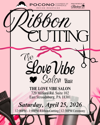 Join the Pocono Chamber of Commerce for the Love Vibe Salon by Tracy Robin on Saturday, April 25, 2026, from 12 PM to 1 PM, with the ceremony at 12:30 PM!